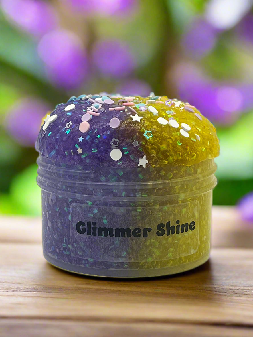 Glimmer Shine is a sparkling sensation that brings color, crunch, and shine all in one slime. This clear-based bingsu slime features a vibrant swirl of yellow and purple bingsu beads, creating a mesmerizing look and an ultra-crunchy texture. Itโs topped with adorable sprinkles for the perfect fi...