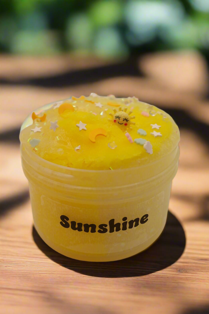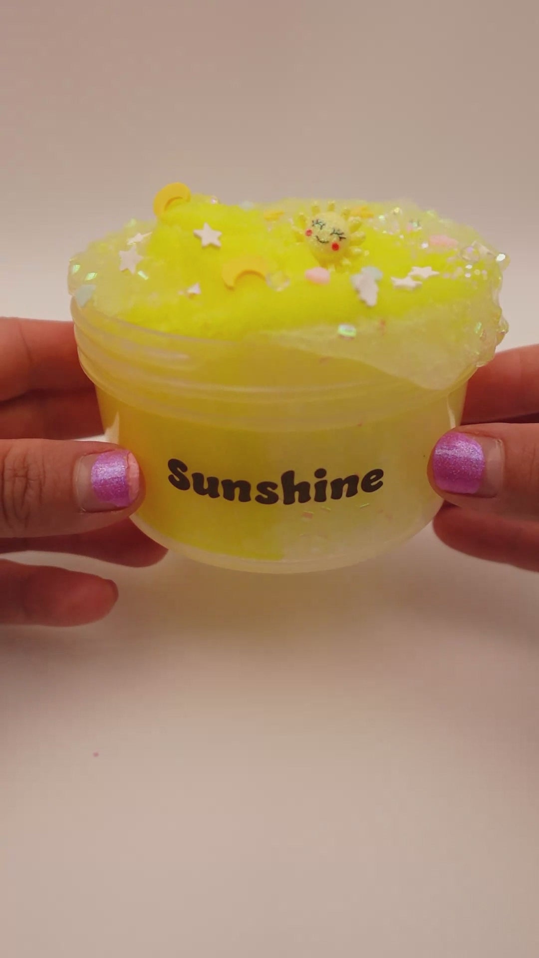 Sunshine is a bright and happy slime that feels just like a warm summer day. This unique mix combines soft Icee slime with crunchy bingsu beads for the perfect blend of stretch and texture. Itโs scented with a juicy peaches and cream scent and topped with a sun charm, glitter, and colorful sprink...