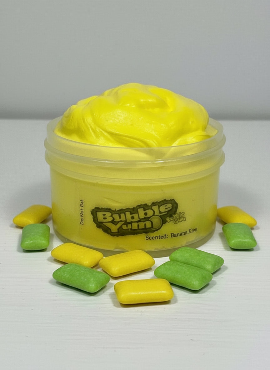 A bright and tropical bubble-gum treat! This soft yellow clay slime is scented with juicy banana and tangy kiwi bubble gum, giving you the perfect mix of sweet and fruity. Smooth, creamy, and ultra-holdable, this slime feels like stretching a warm piece of Bubble Yum in clay form. Perfect for any...