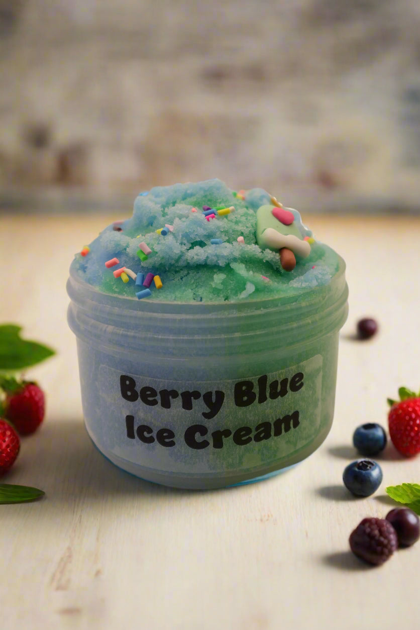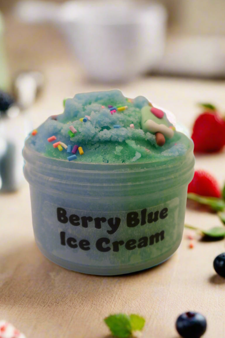 Berry Blue Ice Cream is a cool and colorful treat that’s bursting with fruity fun. This Icee slime features a swirl of blue and green for that perfect frozen dessert look. It’s scented with a refreshing berry blue fragrance and topped off with an ice cream charm and playful sprinkles. Texture: Ic...