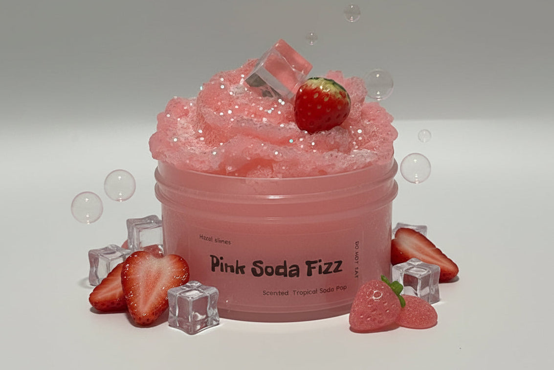 Pink Soda Fizz is a refreshing, drizzly Icee slime inspired by tropical soda pop treats. This light and airy texture creates soft sizzly sounds when stretched and fluffed, making it perfect for satisfying play and aesthetic slime videos. It pairs beautifully with your snack-themed collection. Tex...