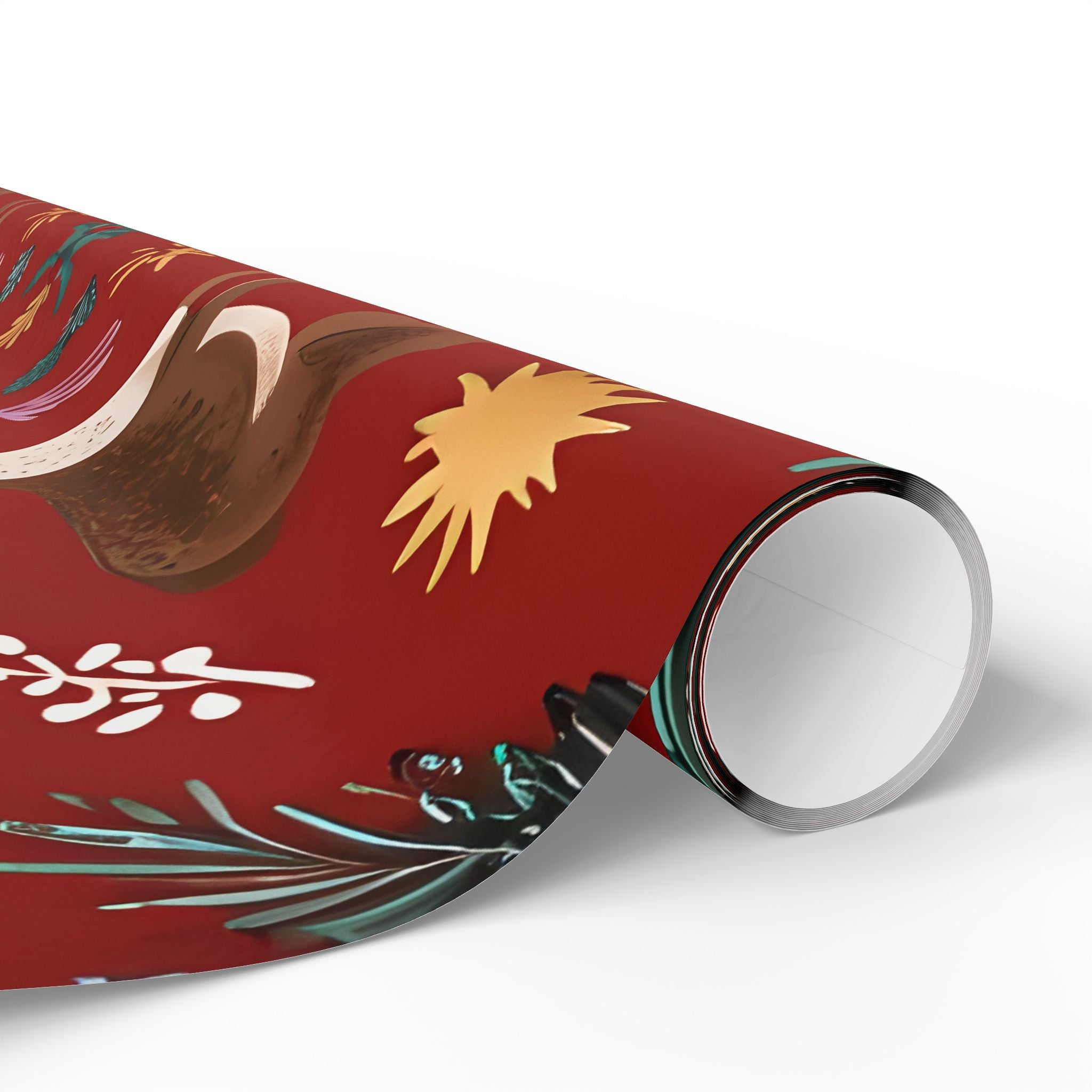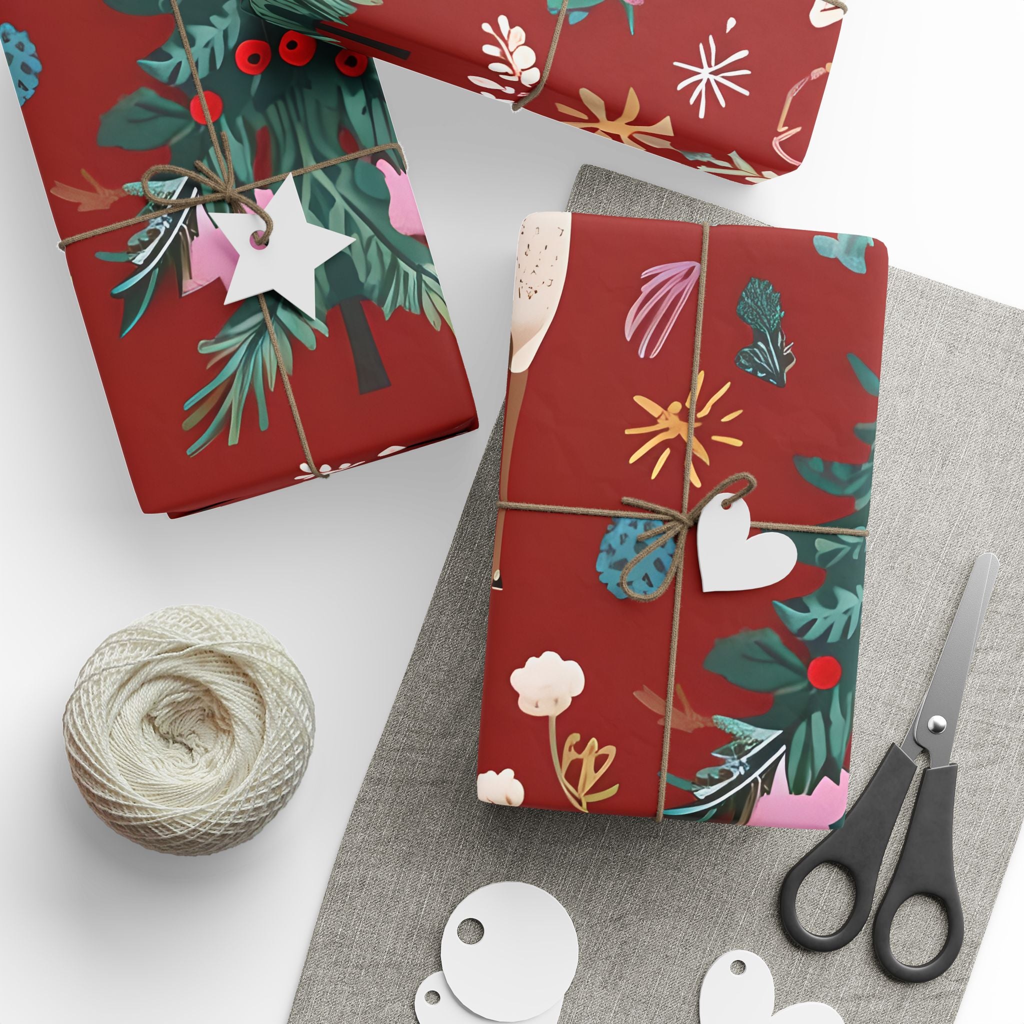Custom-designed by us. Wrap moments in a warm, woodland hush. This festive wrapping paper carries hand-drawn deer, fir sprigs, and delicate flora across a deep crimson field β a small scene that feels like a cozy walk through a snowy forest. The sturdy 90gsm fine art paper holds crisp folds and v...