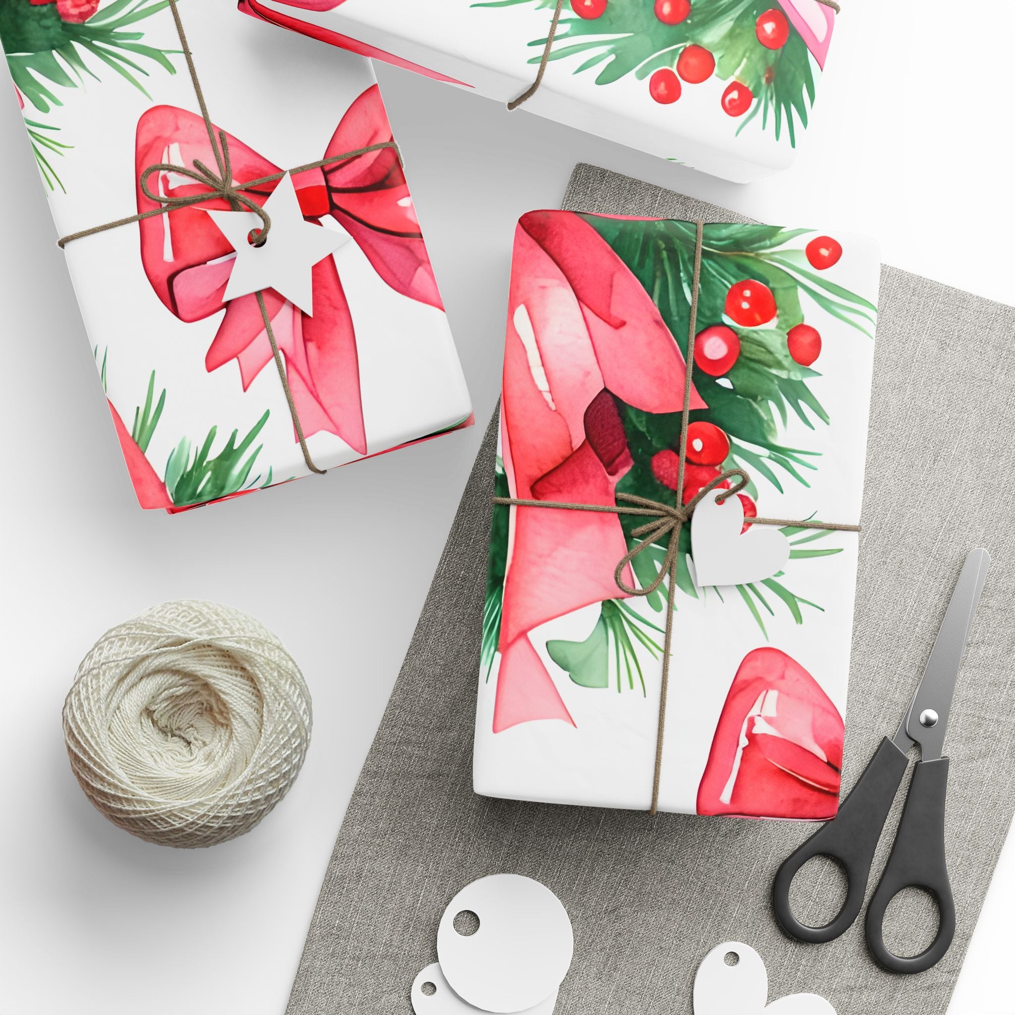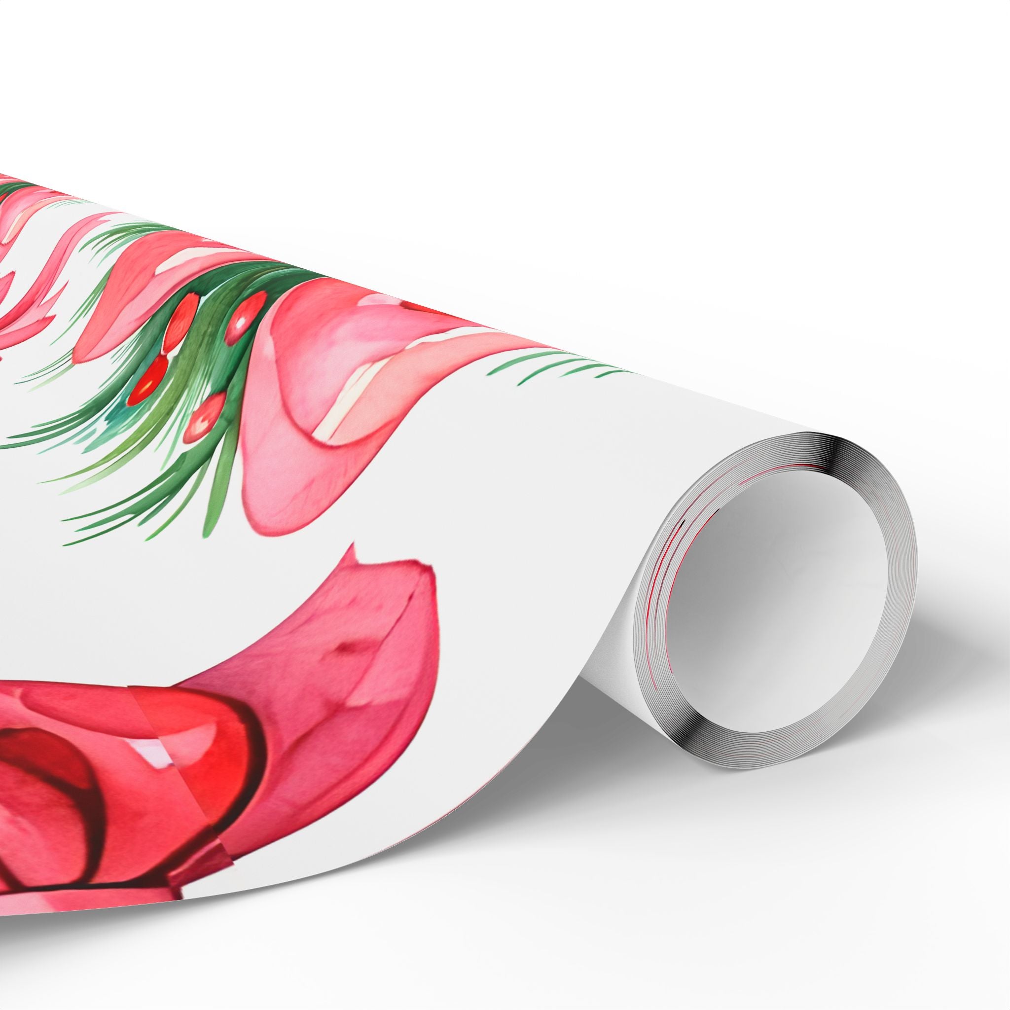 Custom-designed by us. Bring soft holiday charm to your gifts with this Pink Wreath Wrapping Paper. Hand-painted watercolor florals in shades of blush and rose weave through fresh green foliage on a crisp white background, creating a cheerful and timeless design that feels both festive and artisa...