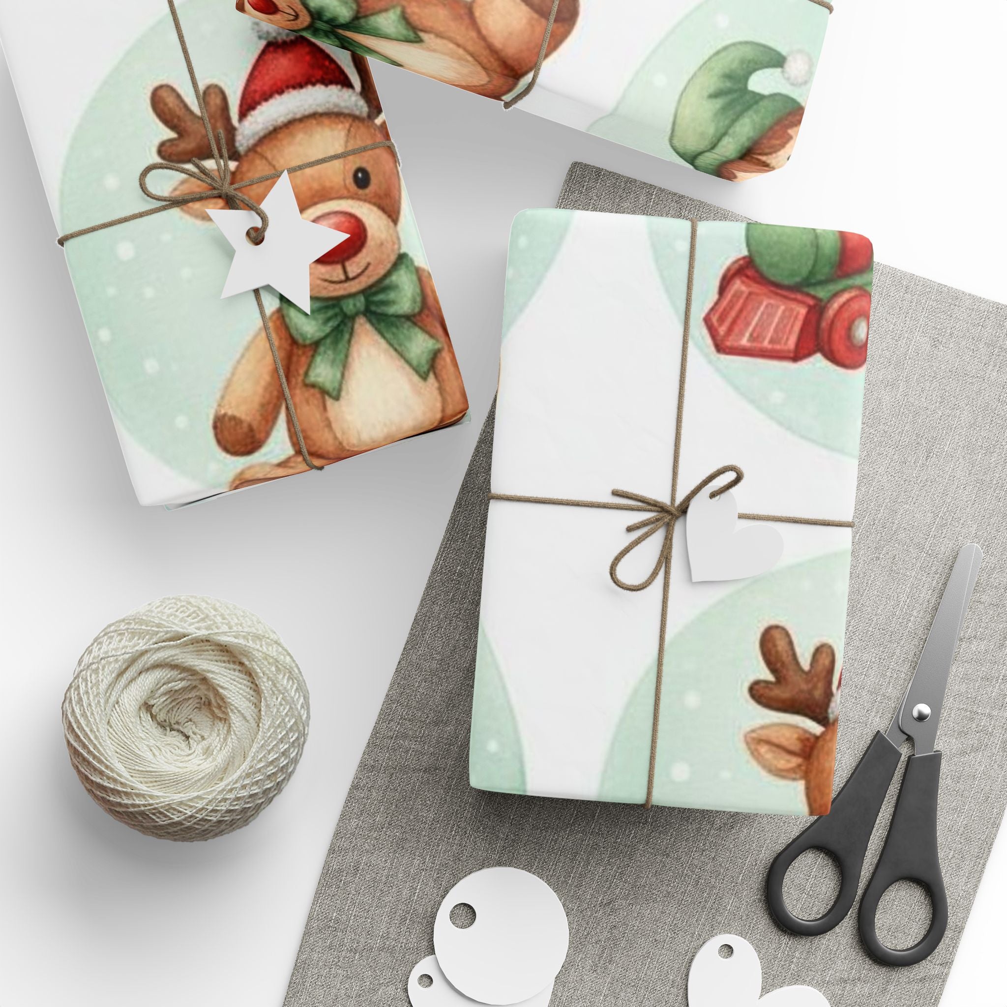 Christmas Reindeer Wrapping Paper Roll β Festive Red Holiday Gift Wrap with Trees & Ornaments